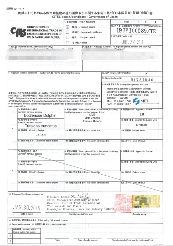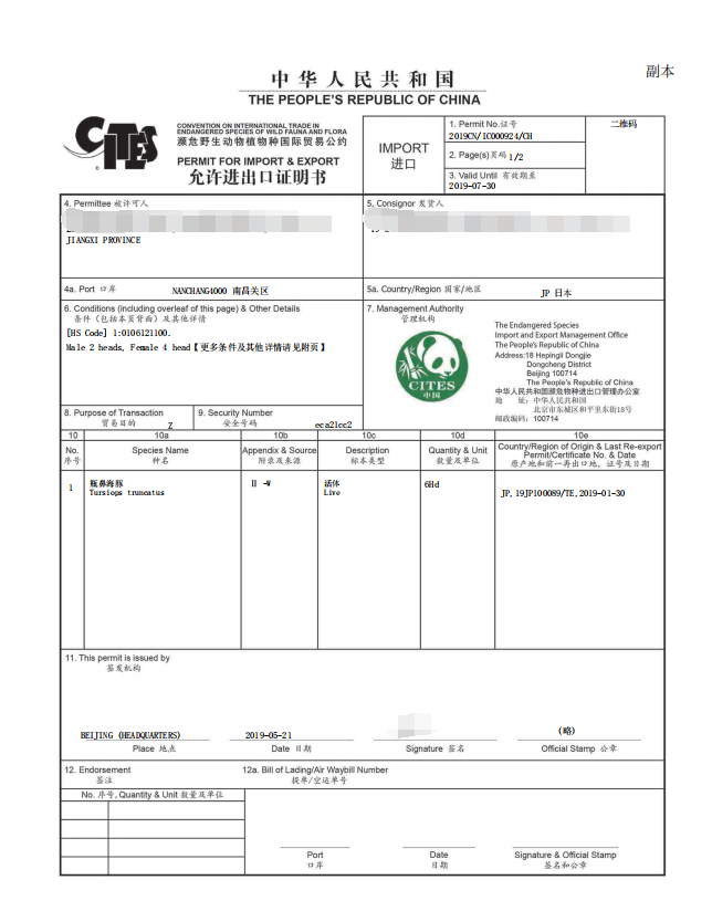 5. 瀕危物種允許進(jìn)出口證明書CITES