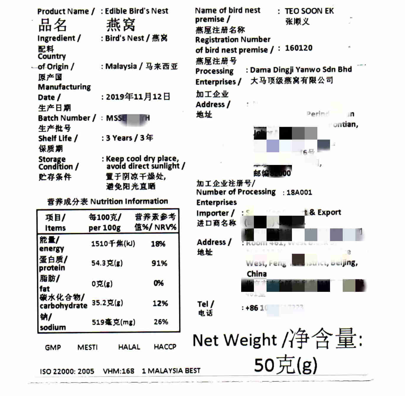 7. 中英文標(biāo)簽標(biāo)識(shí)(收貨人提供)