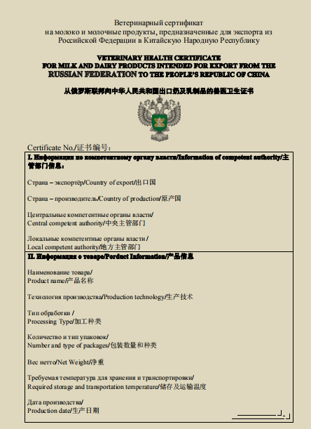 (俄羅斯輸華乳品衛(wèi)生證書(shū)樣本)