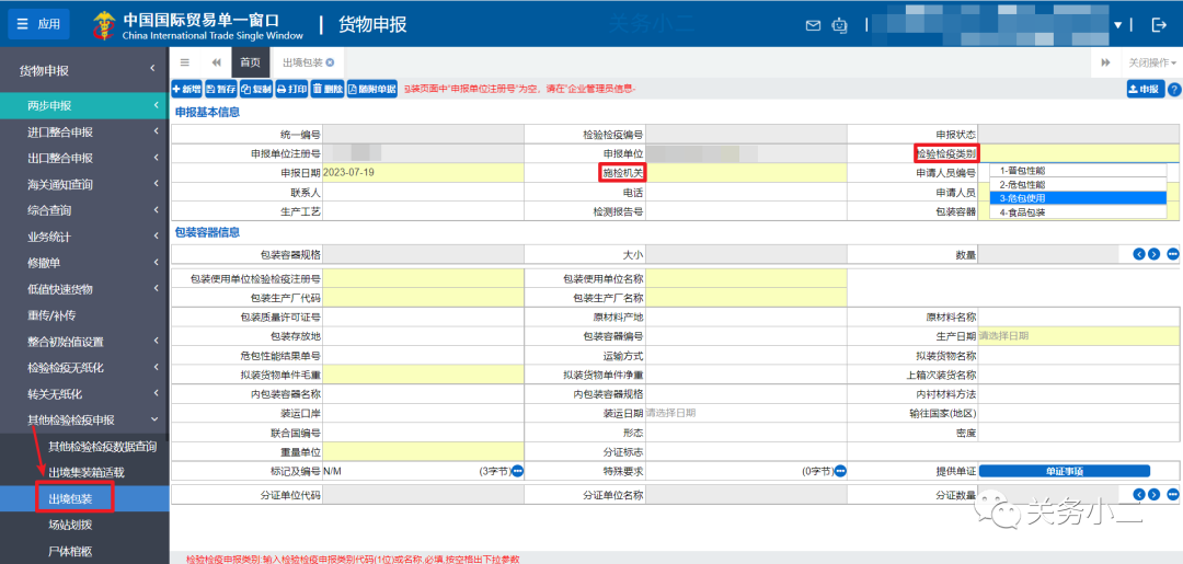 以出口危險貨物包裝使用鑒定申請為例: