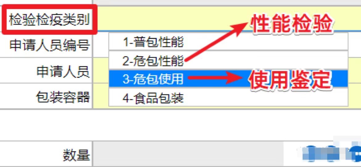 “報檢類別”:填報“危包使用“;